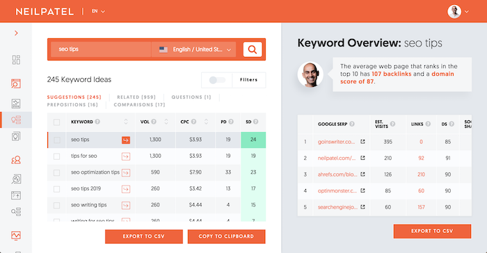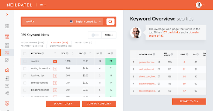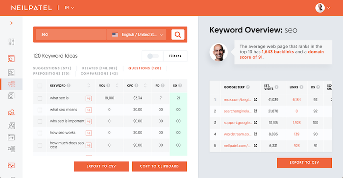 Mi objetivo con Ubersuggest no era crear demasiados informes, pero en cambio, hacer que la herramienta sea fácil de usar para que puedas generar más tráfico de búsqueda.