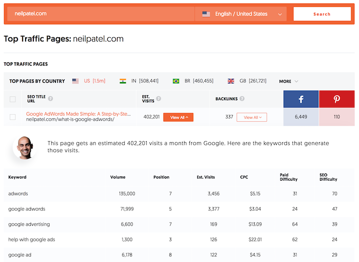 Quiero que repita este proceso para las 10 o 20 páginas más populares de los sitios de tus principales competidores. Esto te dará una idea de las palabras clave que están utilizando para atraer tráfico.